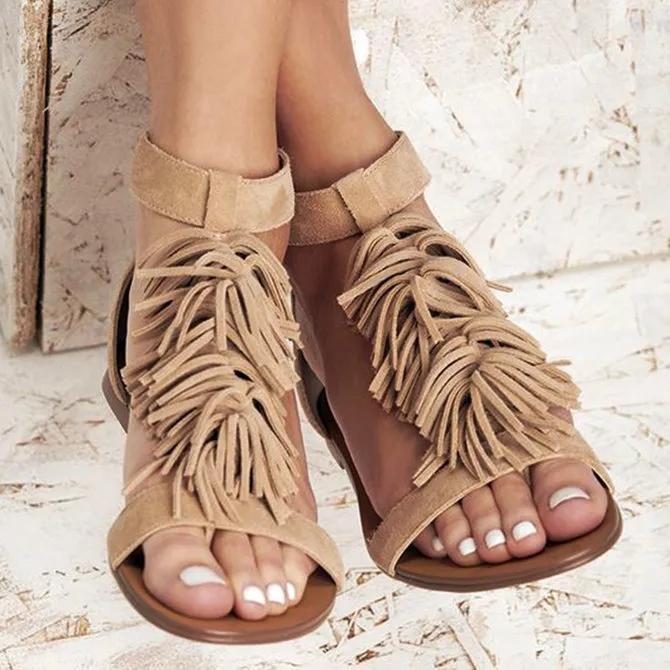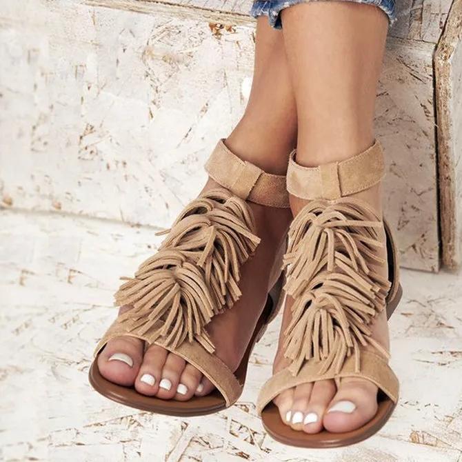 Women's Pearl Accessory Leather Drawstring Boho Sandals