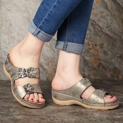 Flowers Slip On Soft Casual Wedge Sandals