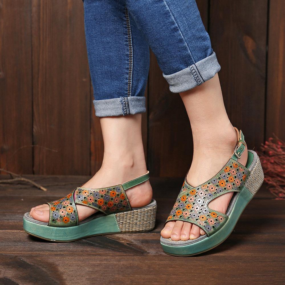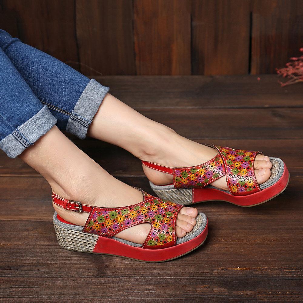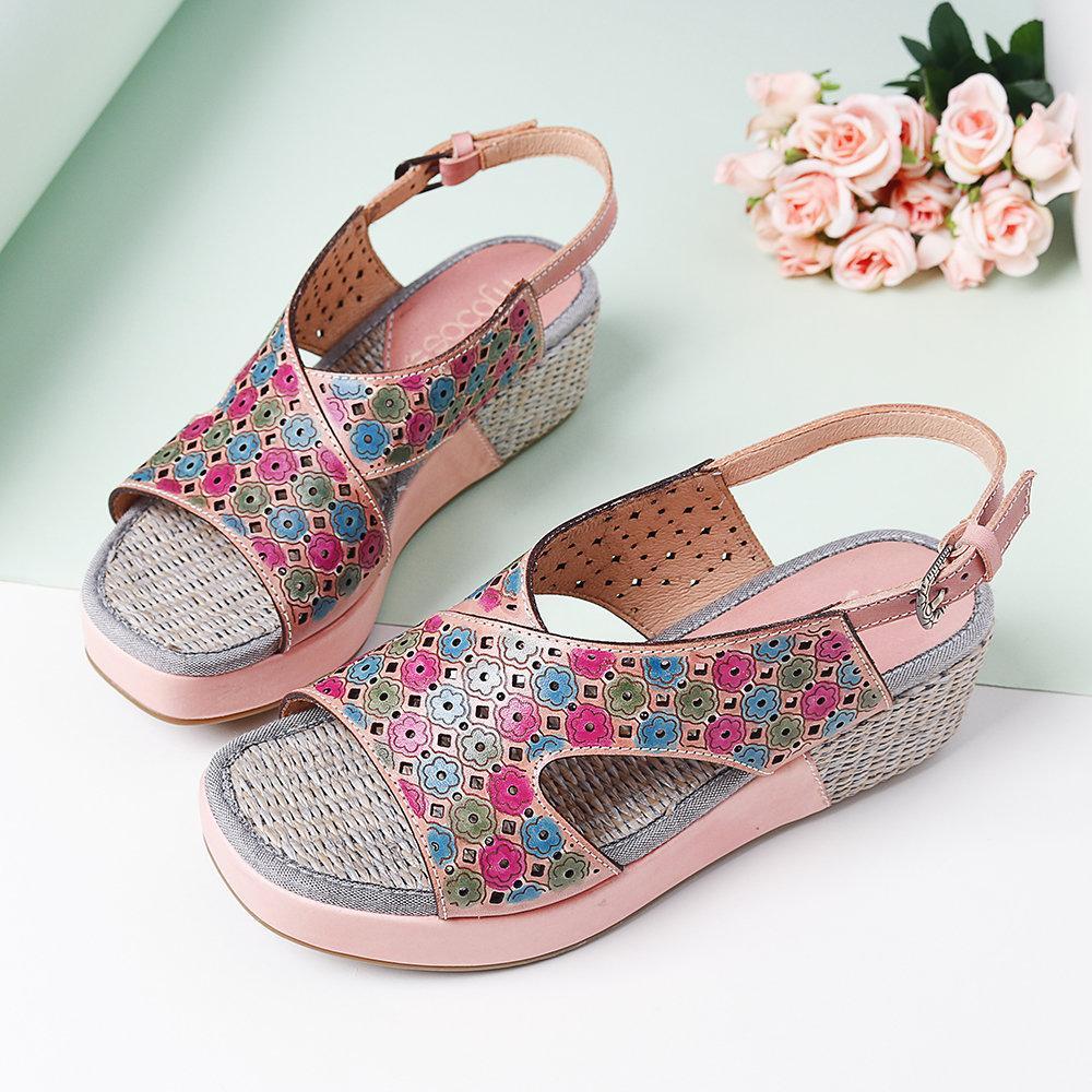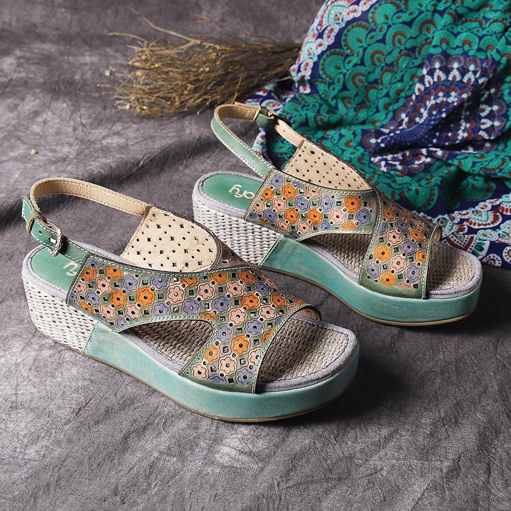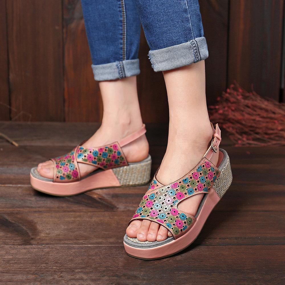 Handmade Stitching Comfortable Open Toe Casual Wedges Sandals