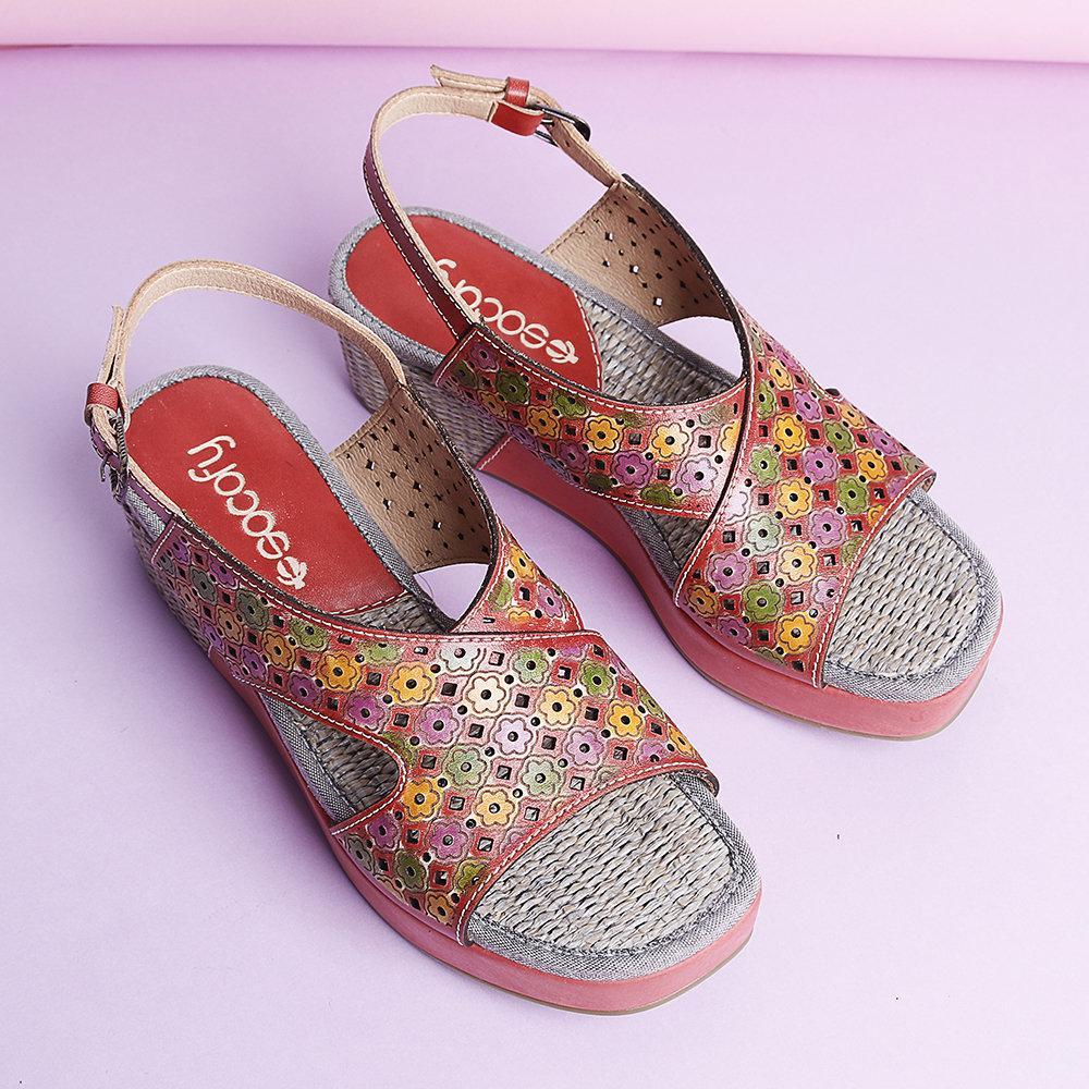 Candy Color Hollow Flowers Pattern Platform Buckle Strap Sandals