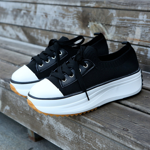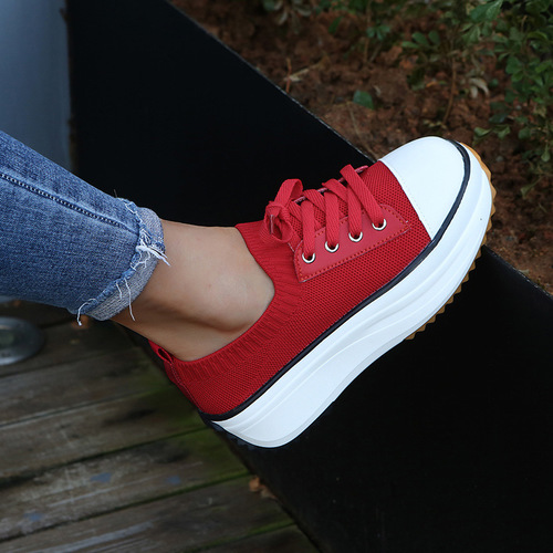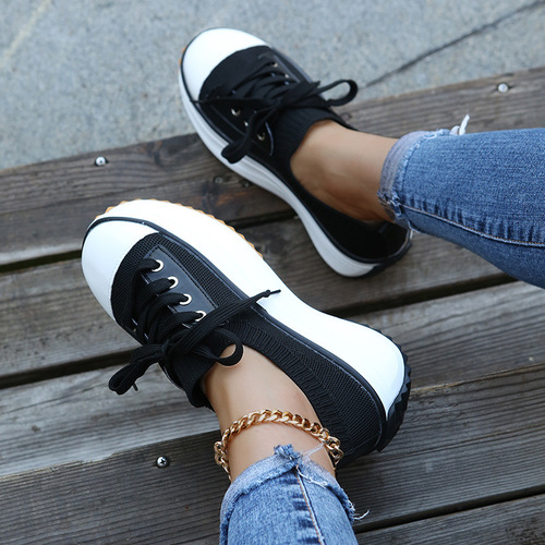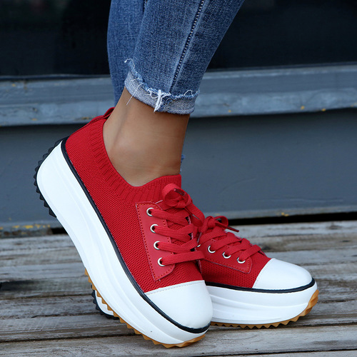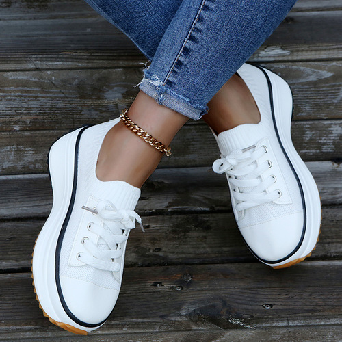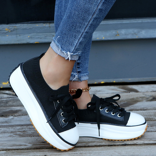 Casual Canvas Platform Wedge Lace-Up Shoes