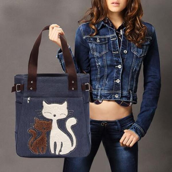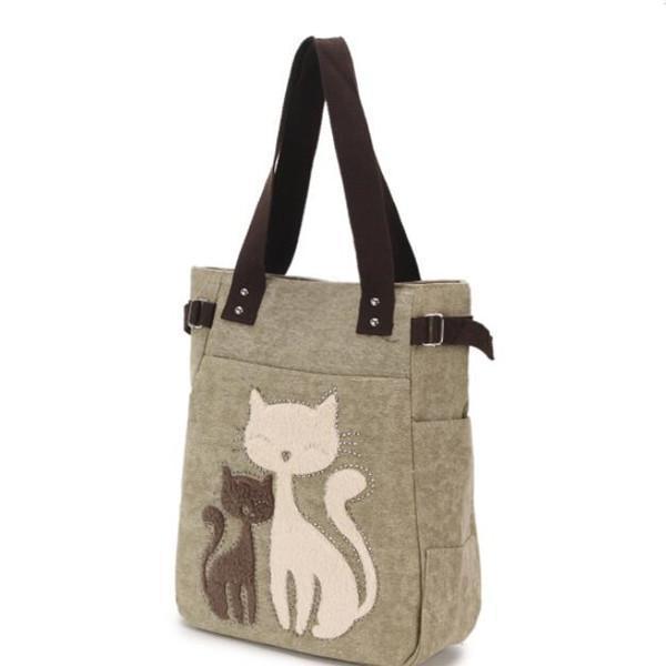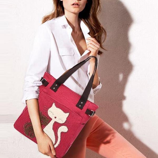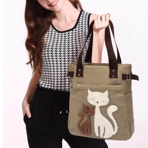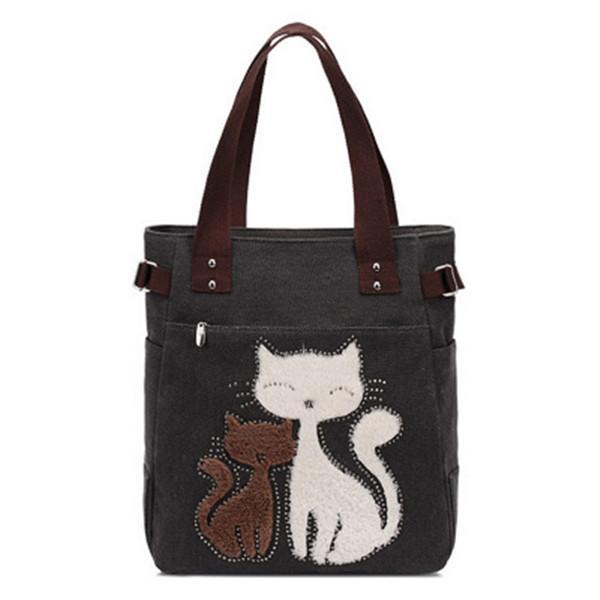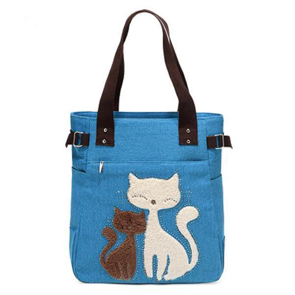 Casual Cute Cat Large Capacity Canvas Handbag Shoulder Bag