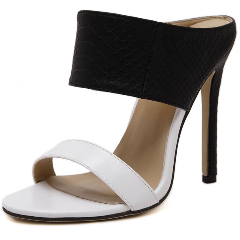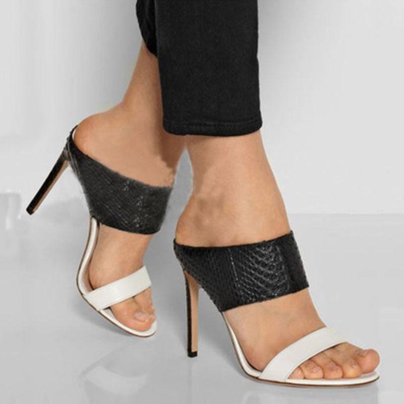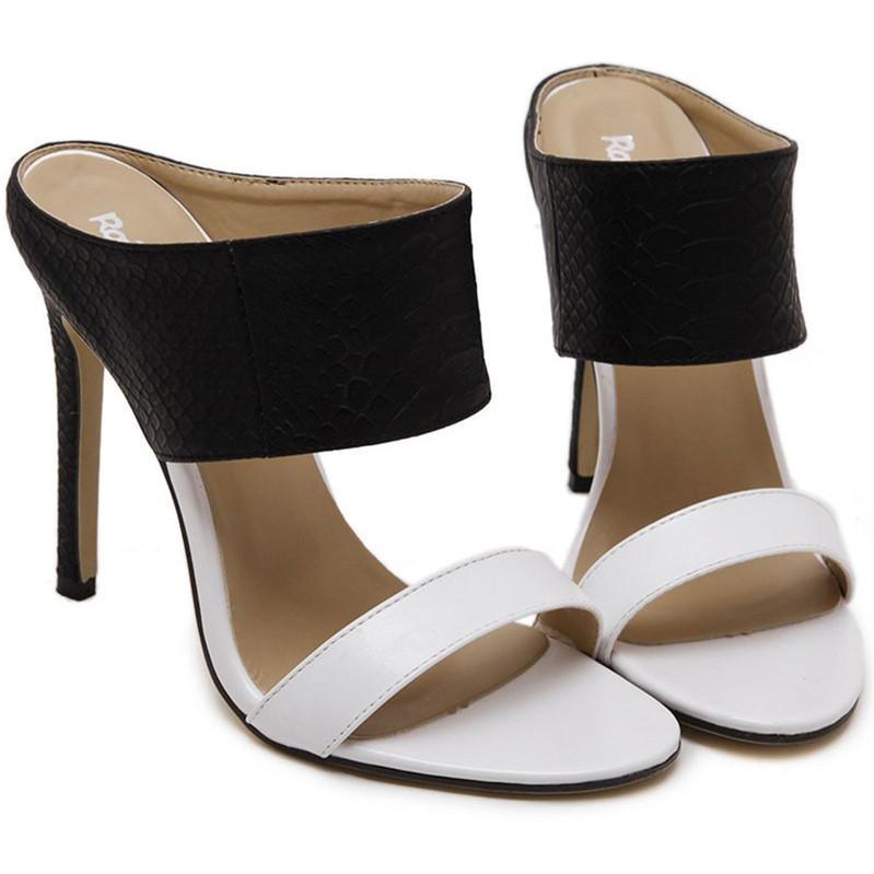 Color Block Slip-On Stiletto Heel Open Toe Sandals