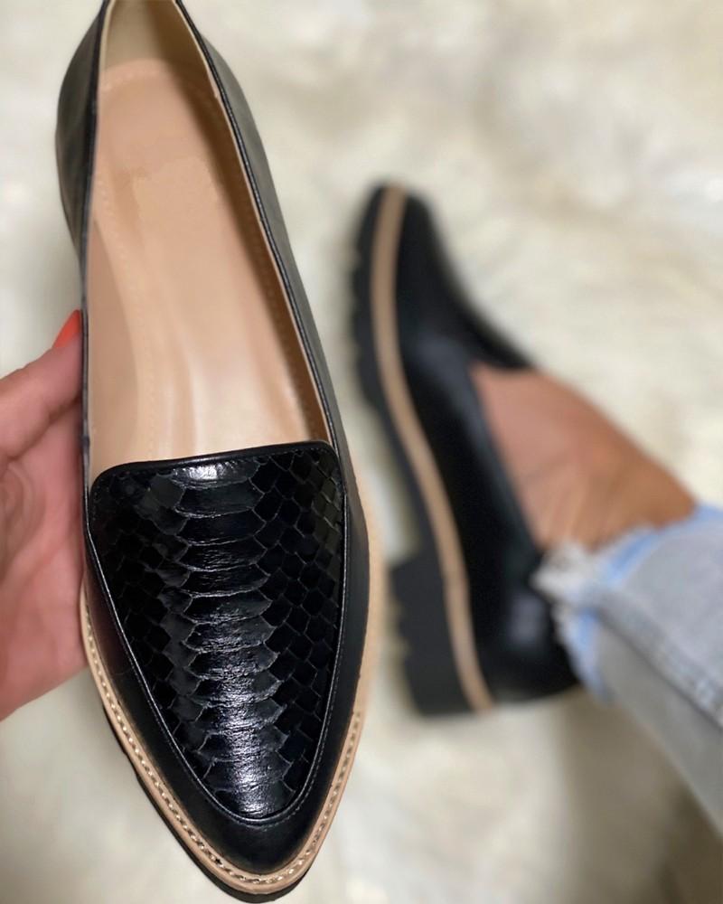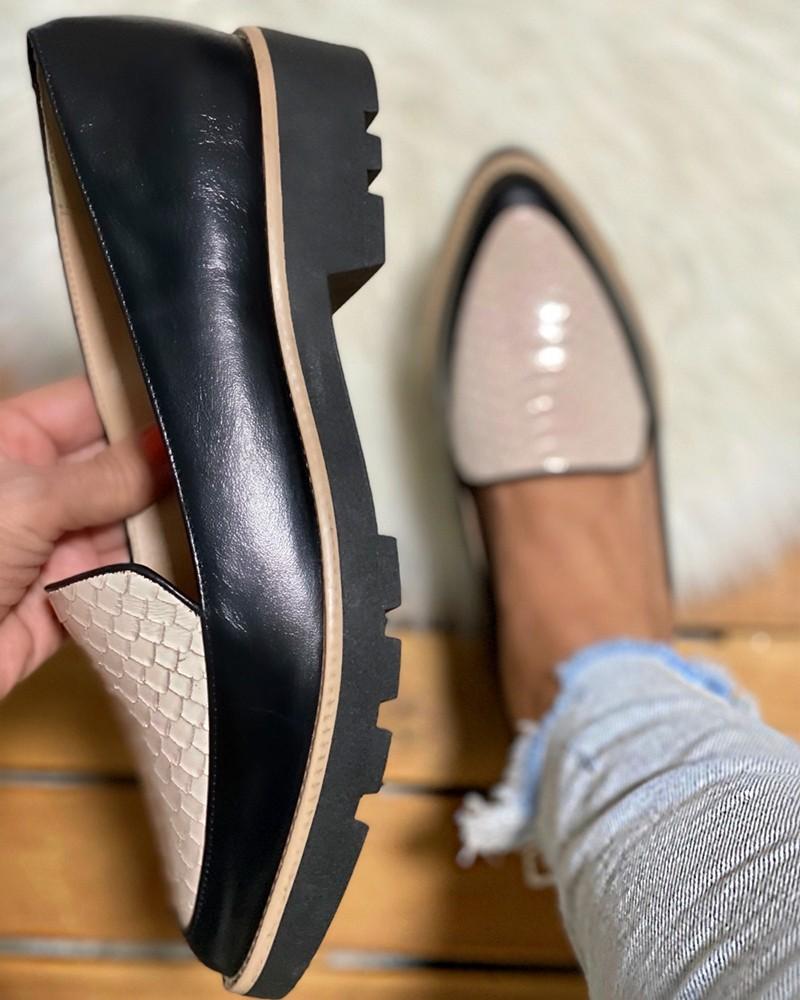 Colorblock Pointed-toe Platform PU Loafers