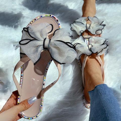 Colored Rhinestone Bow Ribbon Flip Flops Sandals