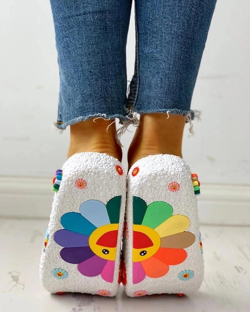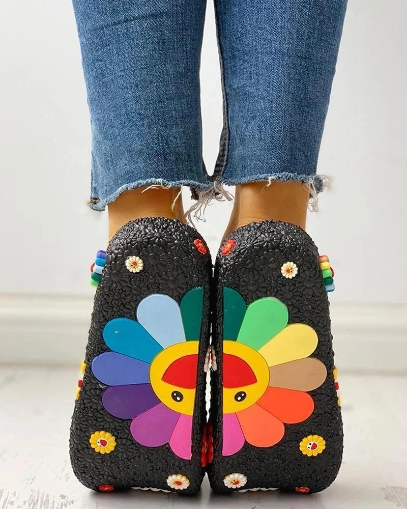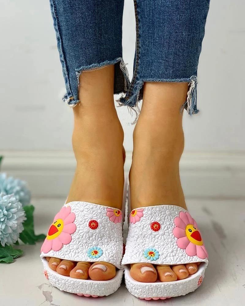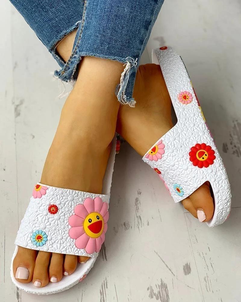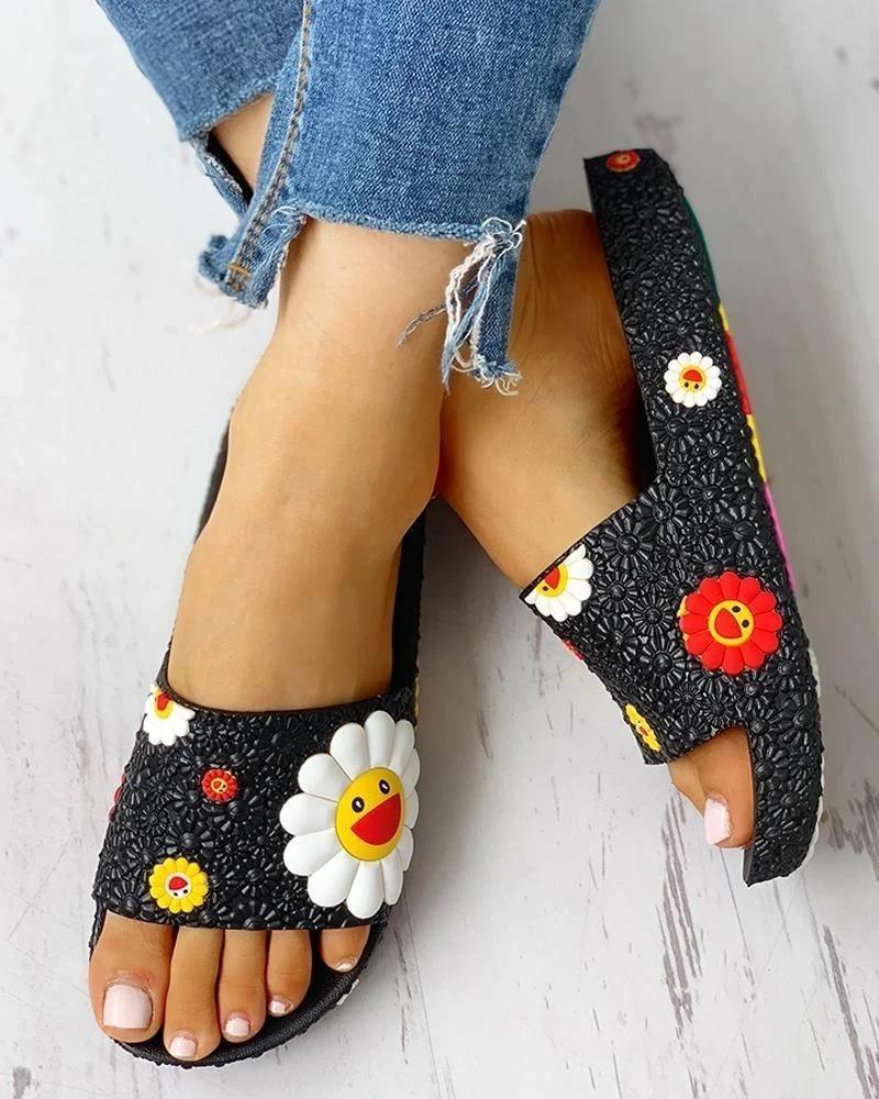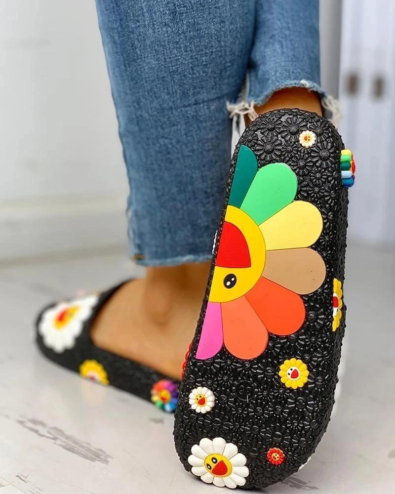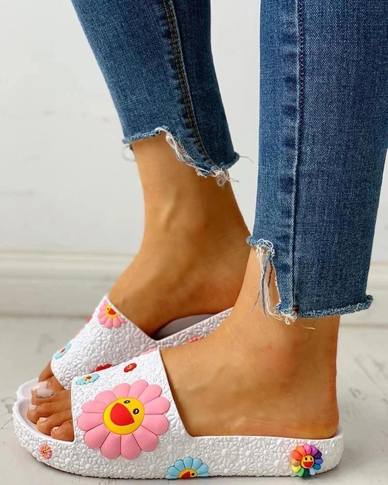 Colorful Smile Sunflower Emblished Beach Slides Slippers