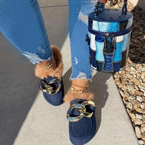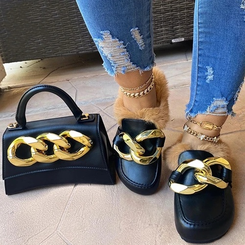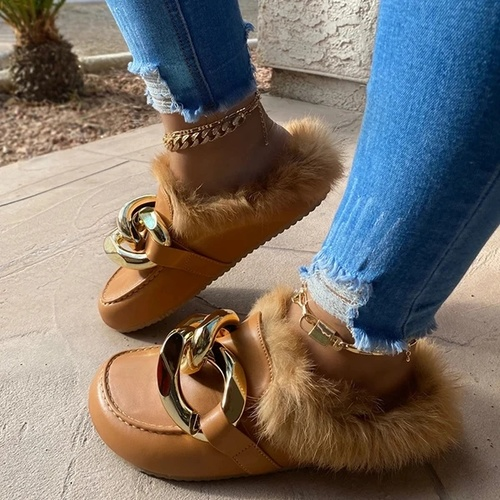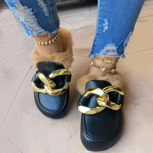 Comfortable Faux Fur Large Chain Slippers