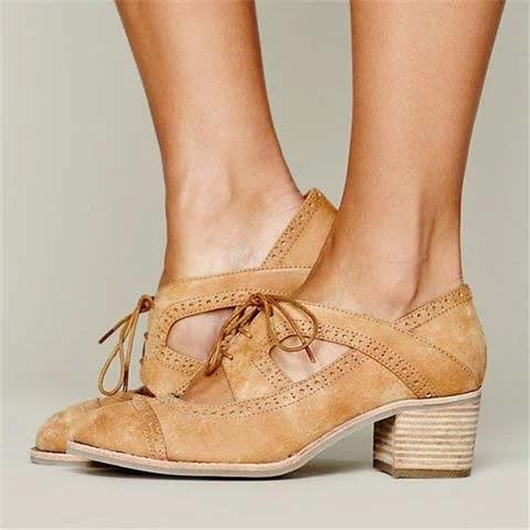 Cutout Lace-up Low Heel Oxford Shoes Women Daily Loafers Sandals