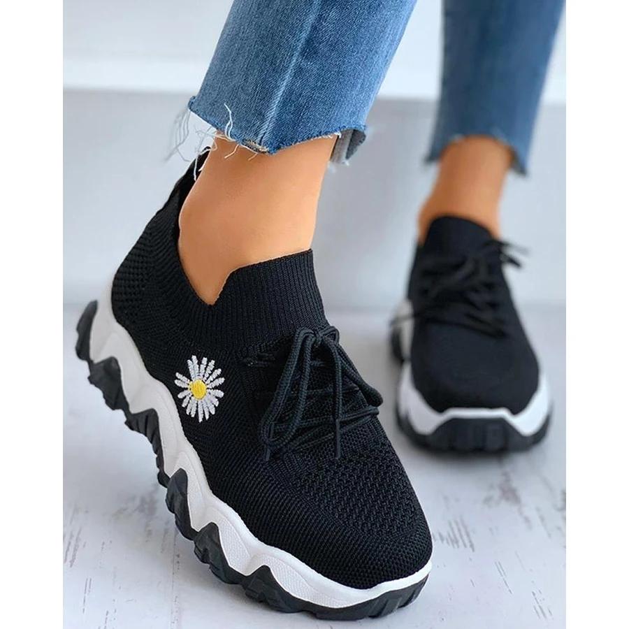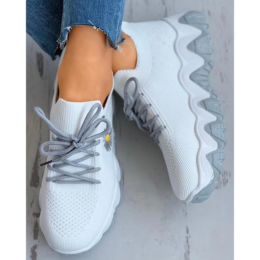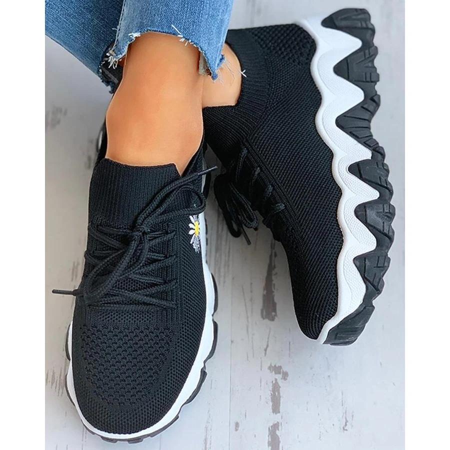 Daisy Pattern Lace-Up Breathable Sneakers