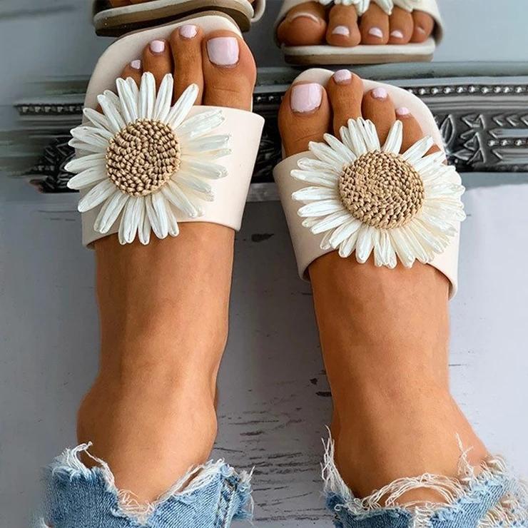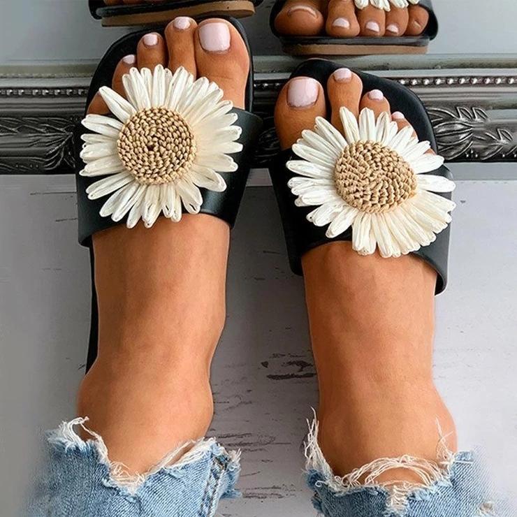 Daisy Pattern Square Toe Flat Sandals