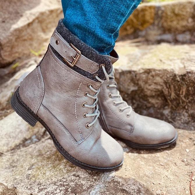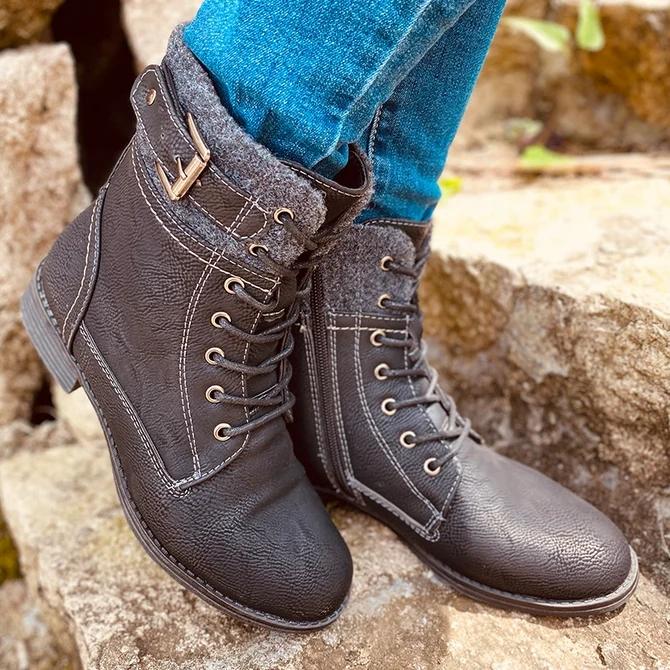 Women Round Toe Lace-Up Pu Winter Low Heel Casual Loafers