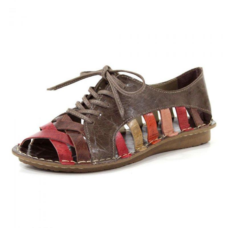 Date Hollow-out Casual Peep Toe Lace Up Sandals