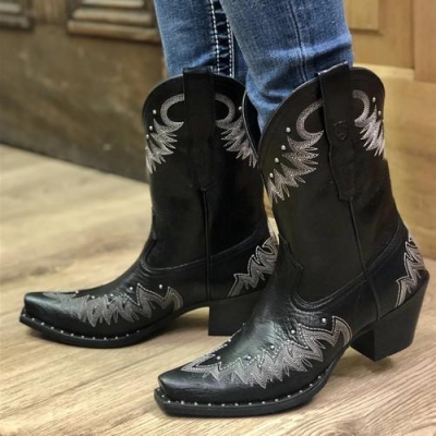 Ankle Booties Slip-on Women Cowboy Boots