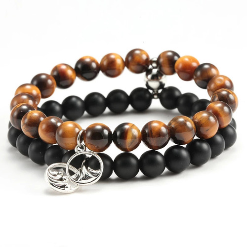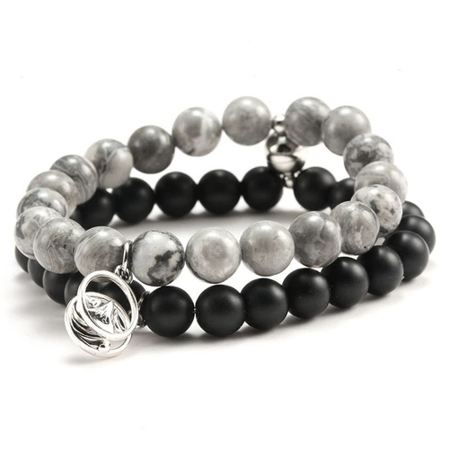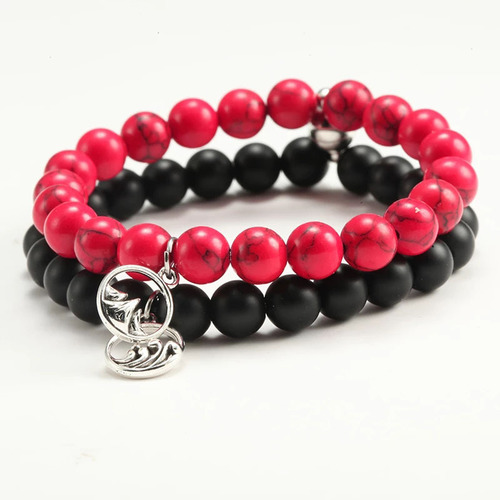 Distance Beaded Couple Bracelets With Volcanic Rocks