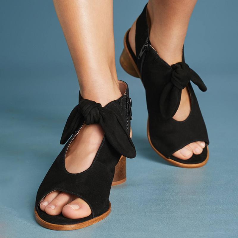 Elegant Bow Peep Toe Heels Zipper Chunky Heel Sandals