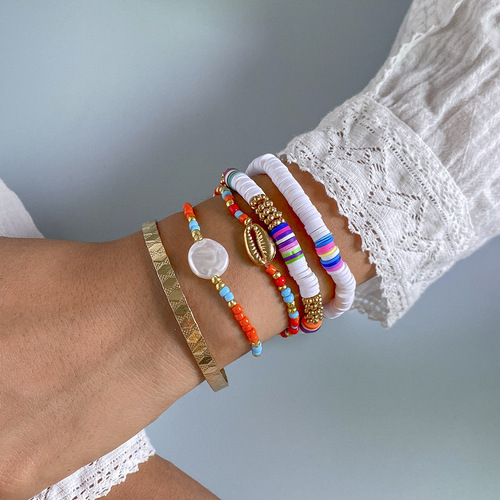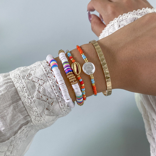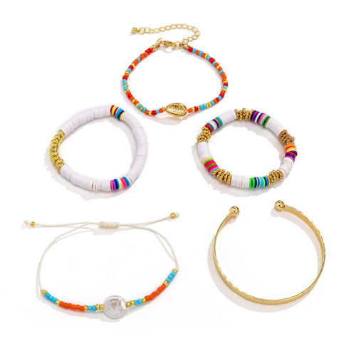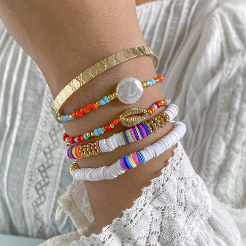 Ethnic Style Pearl Shell Braided Bracelet Set