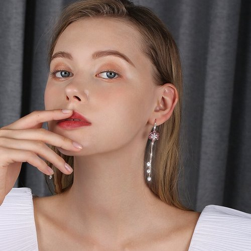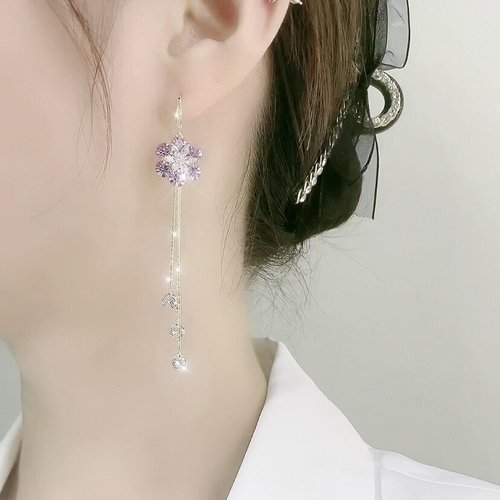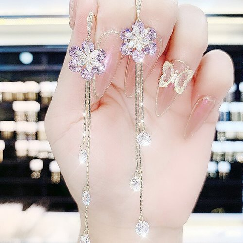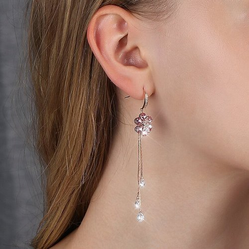 Fashion zircon flower tassel earrings