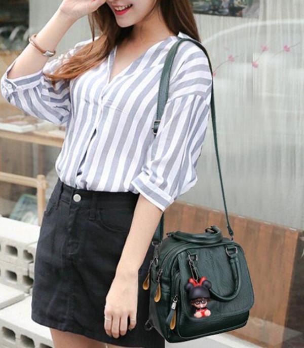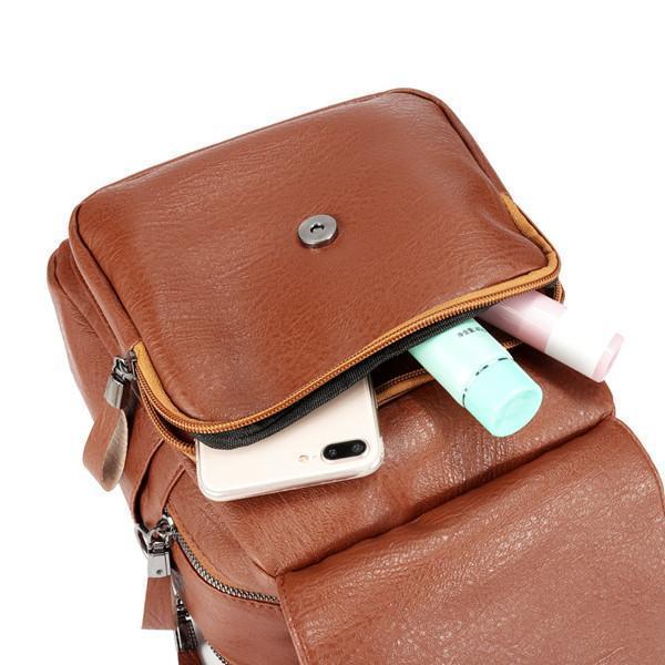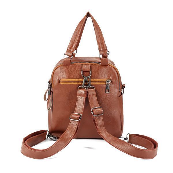 Faux Leather Handbag Travel Backpack Double Layer Crossbody Bag