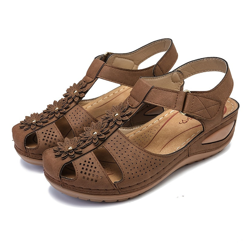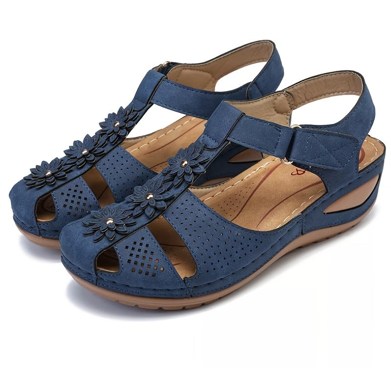 Faux Leather Hook & Loop Sandals - Women's Open Toe Casual Shoes