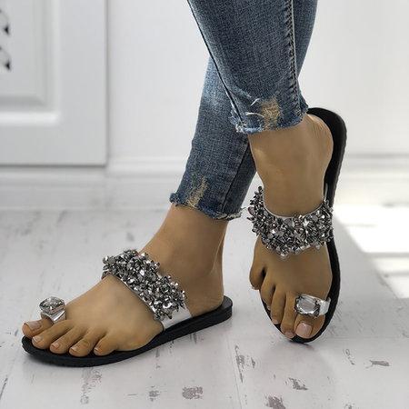 Faux Rhinestone Women Toe Ring Flat Sandals