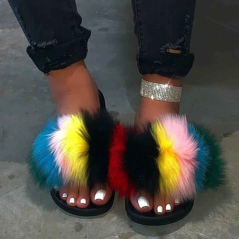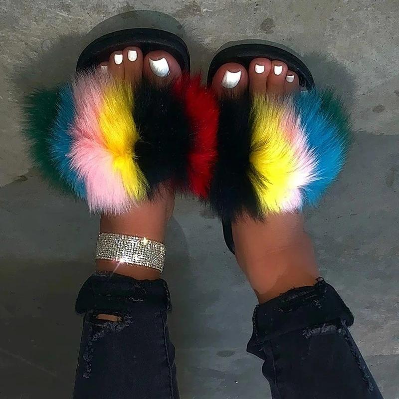 Hairy open-toed comfortably worn home slippers