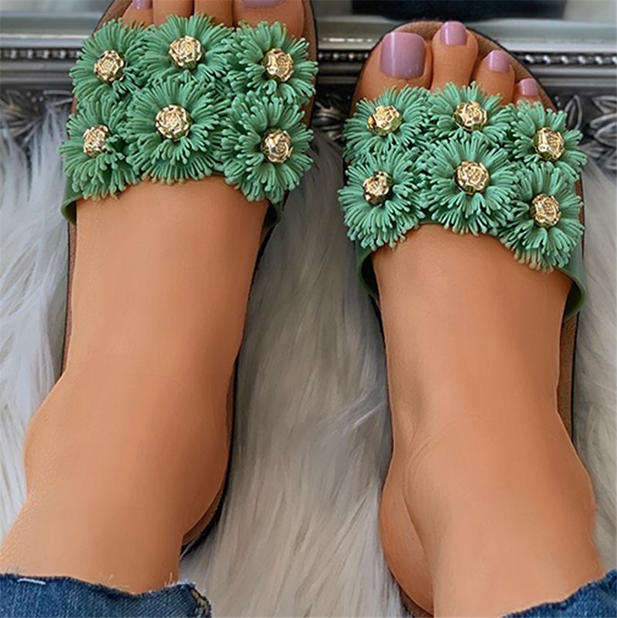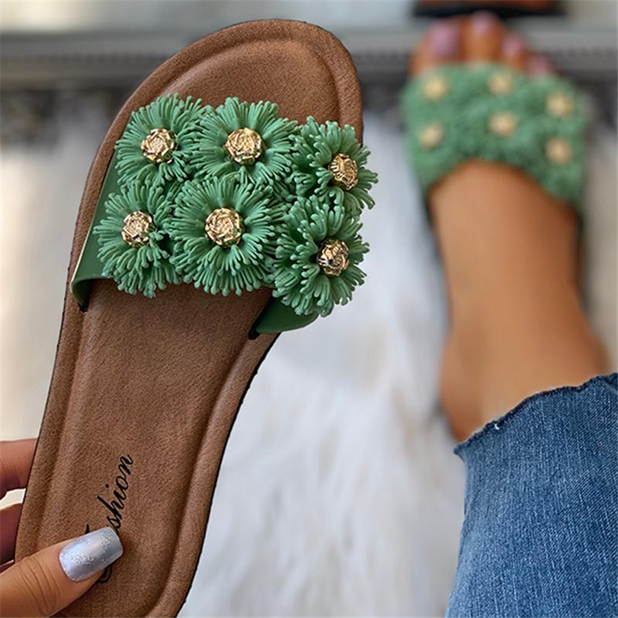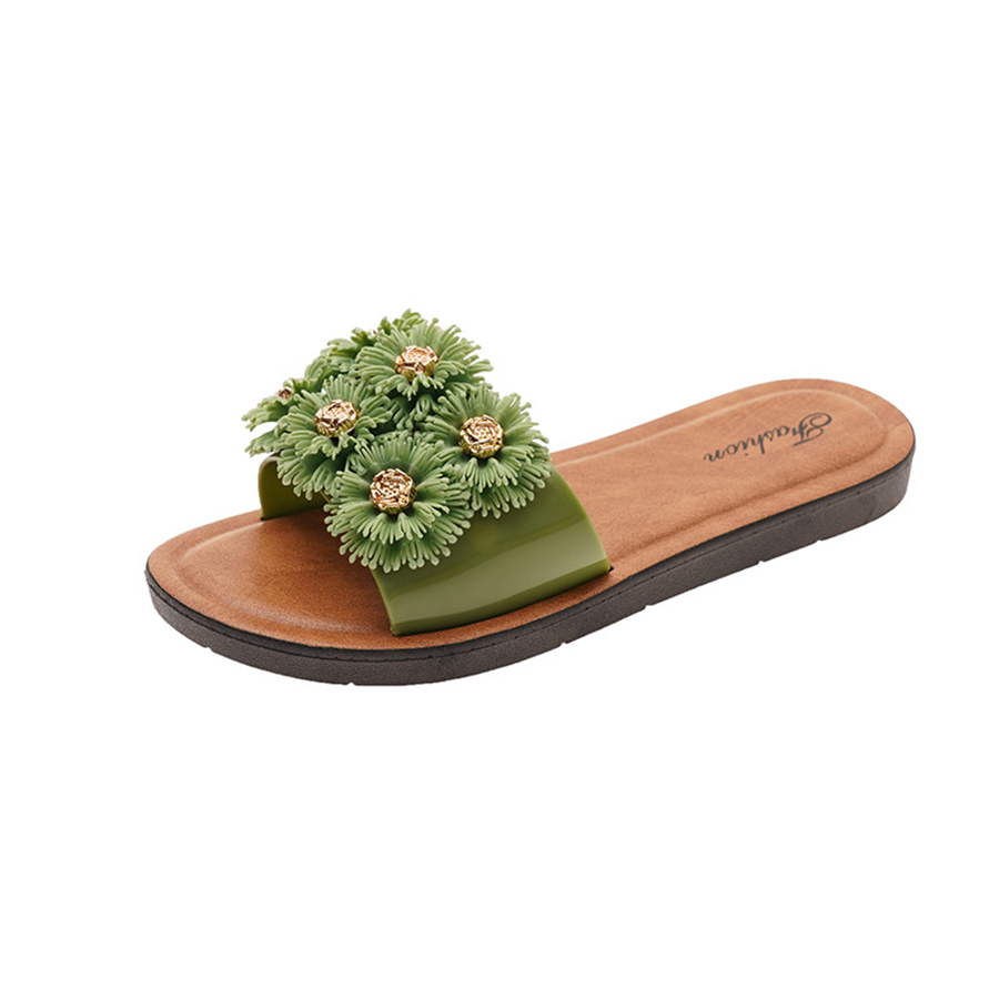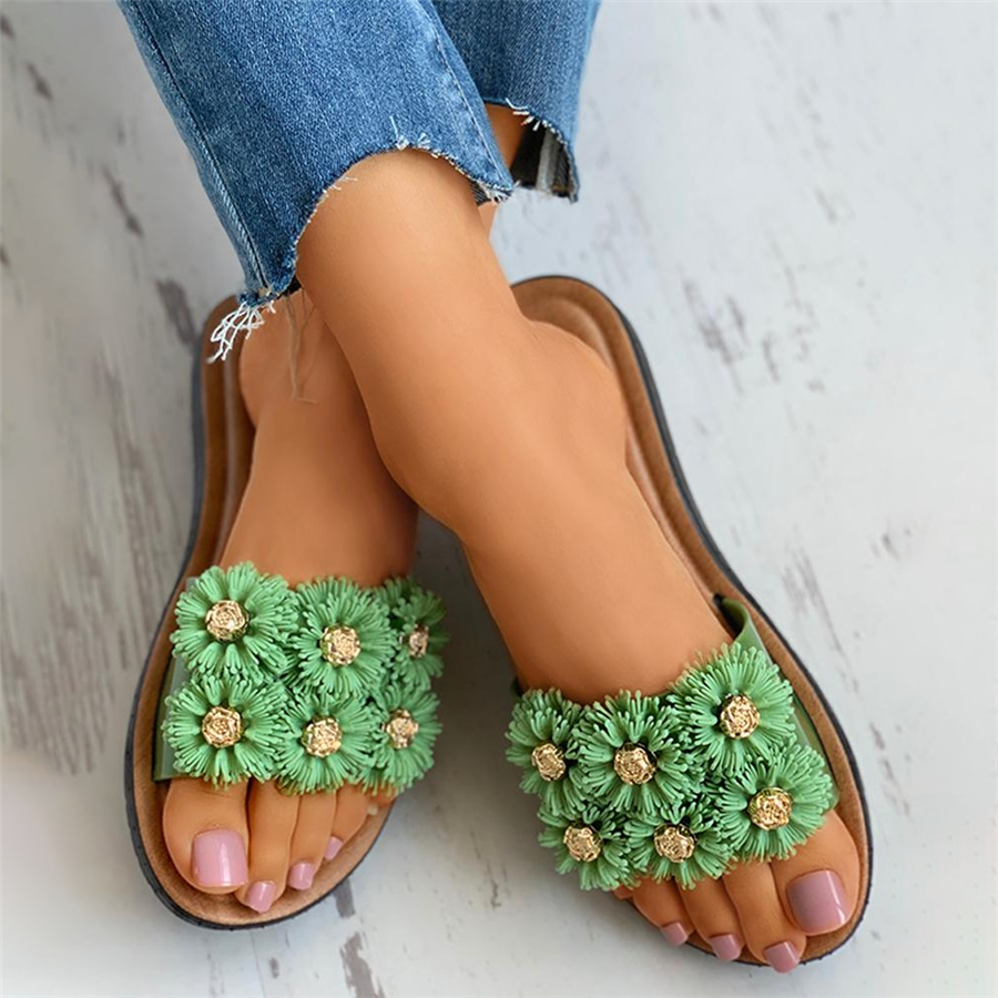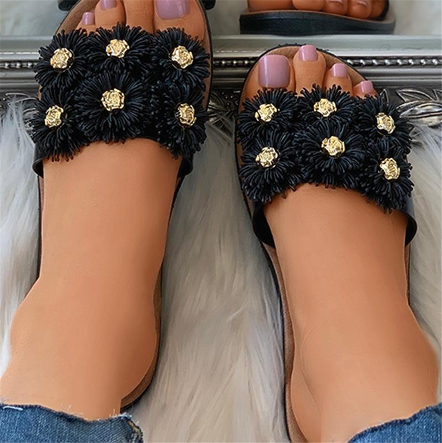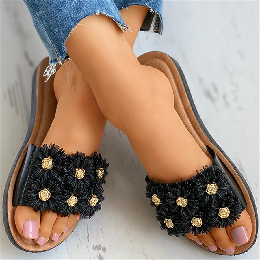 Floral Pattern Detail Open Toe Flat Slider Sandals