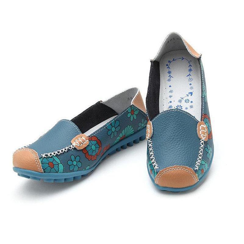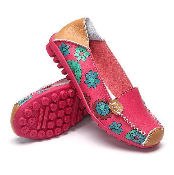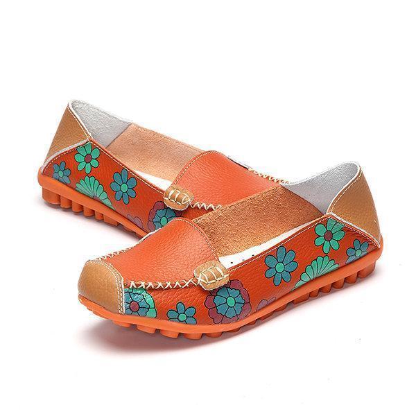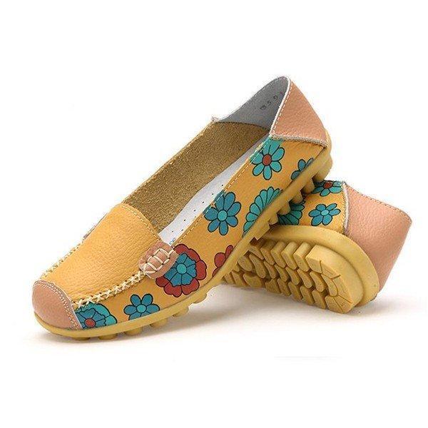 Floral Print Color Matching Soft Comfortable Slip On Flat Shoes