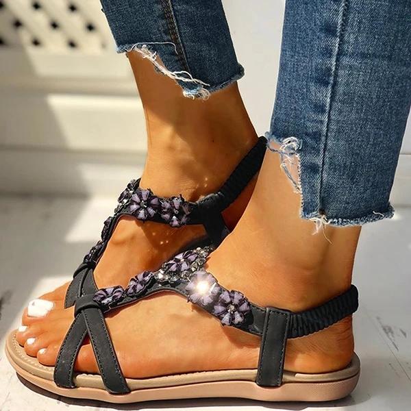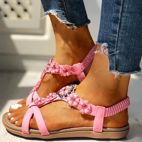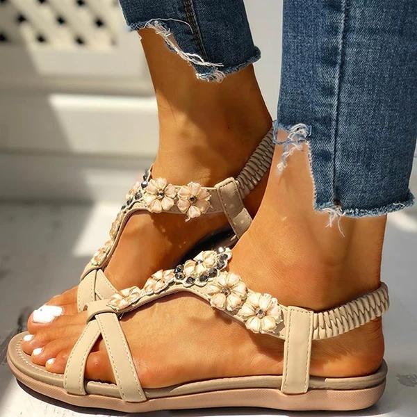 Flower Embellished Flat Sandals