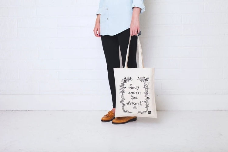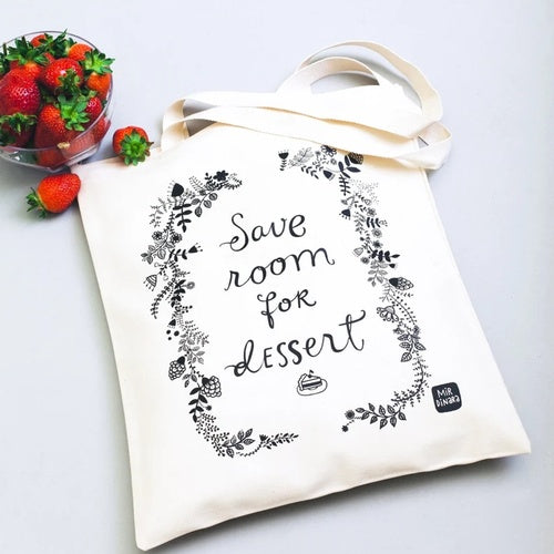 Grocery Bag - Shoulder Bag - Cotton Tote Bag - Canvas Shopper - Save Room for Dessert Tote Bag - Alphabet Bags