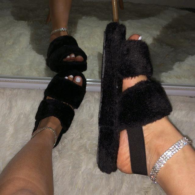 Hairy open-toed comfortably worn home slippers