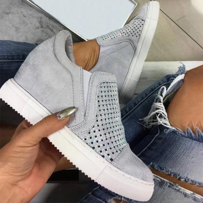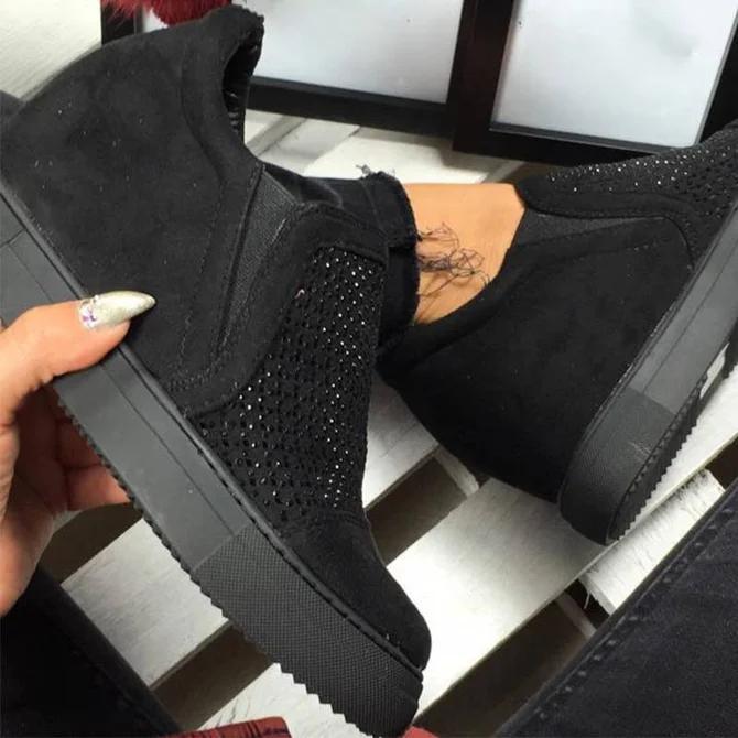 Fashion Letter Slip On Wedge Sneakers Faux Suede Wedge Heel Casual Sneakers