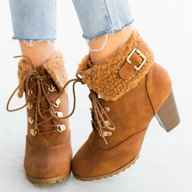 High Heel Outdoor Winter Faux Suede Boots