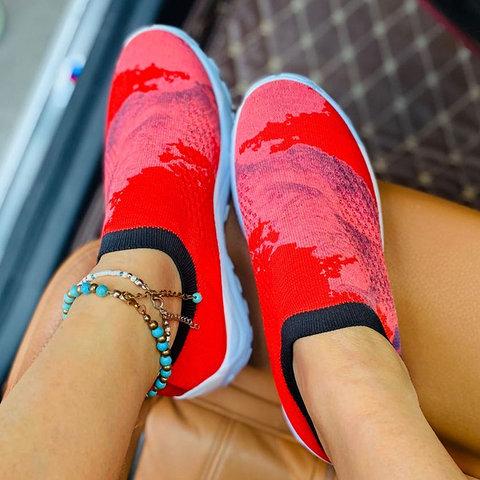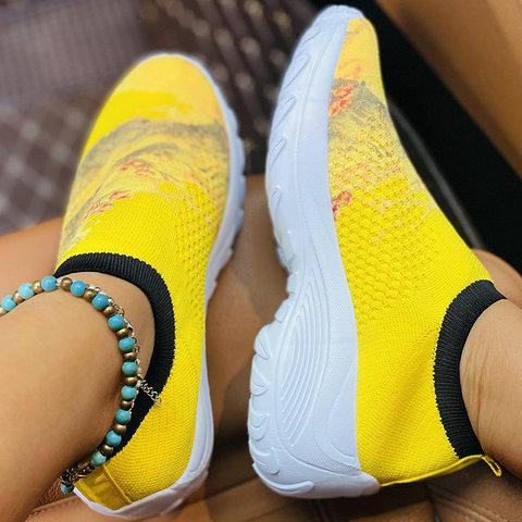 Women Hit Color Flyknit Fabric Sneakers