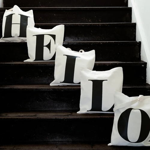 Every lovely letter of the alphabet printed big and bold in black ink on natural cotton.