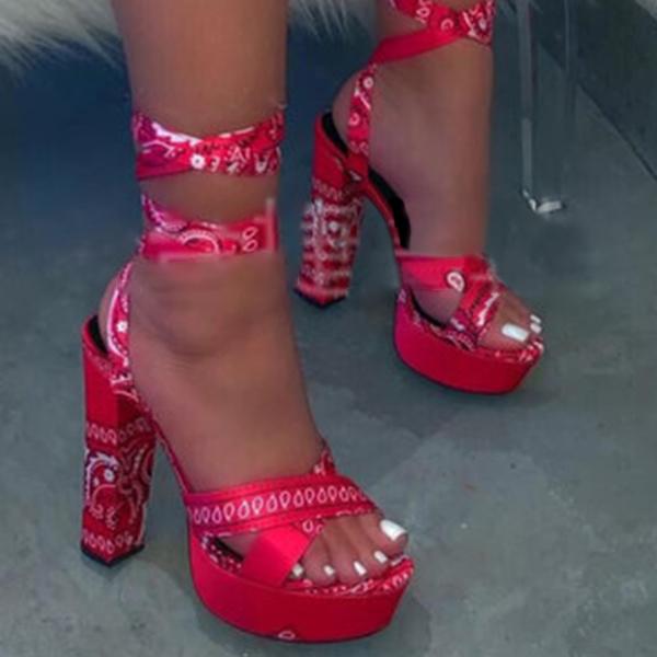 Lace-Up Peep Toe Chunky Heel Ankle Strap Platform Sandals