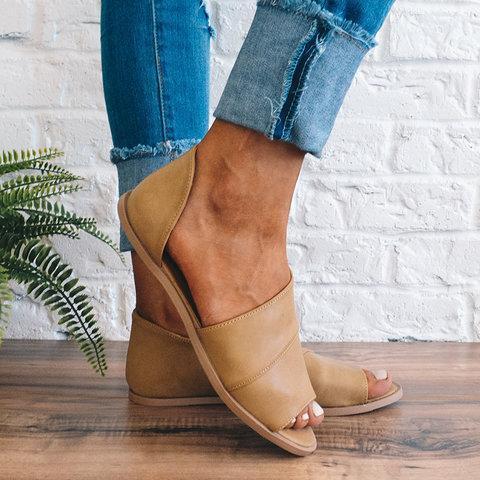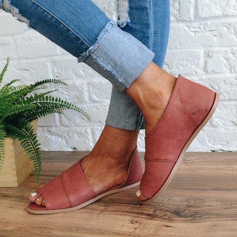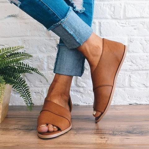 Large Size Peep Toe Flats Slip On Flat Heel Sandals Shoes