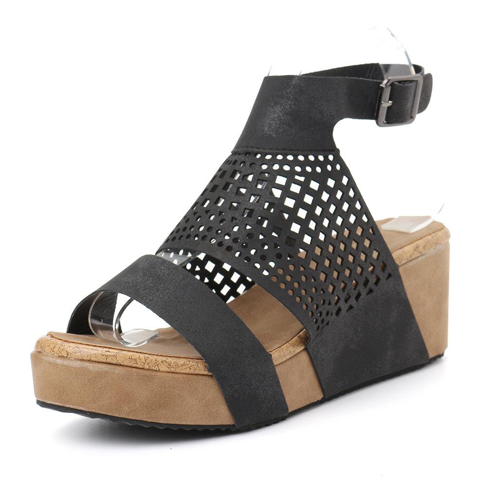 Large Size Women Breathable Open Heel Hollow Buckle Platform Sandals