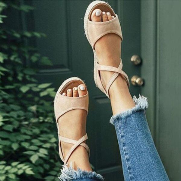 Large Size Women Fashion Flat Heel Strap Flats Sandals Lace-up Sandals
