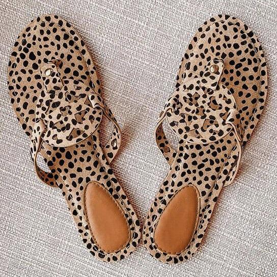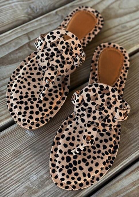 Leopard Printed Hollow Out Beach Flat Sandals