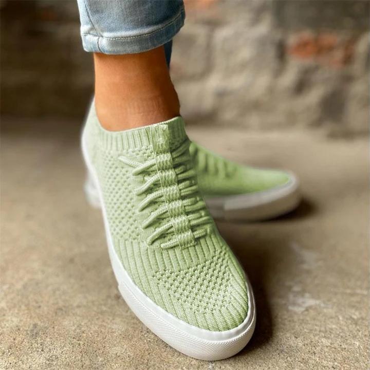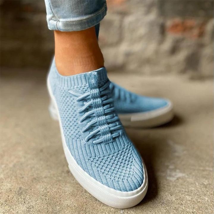 Lightweight Round Toe Low-Heel Knitted Lace-Up Breathable Loafers