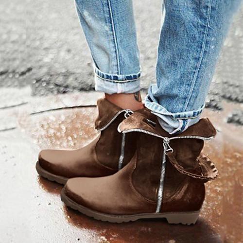 Women's Buckle Zipper Ankle Boots Low Heel Boots