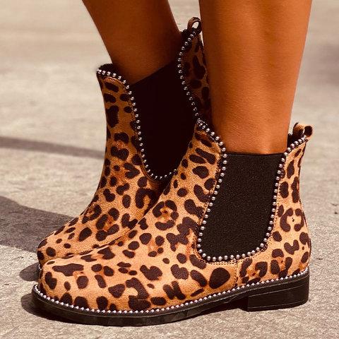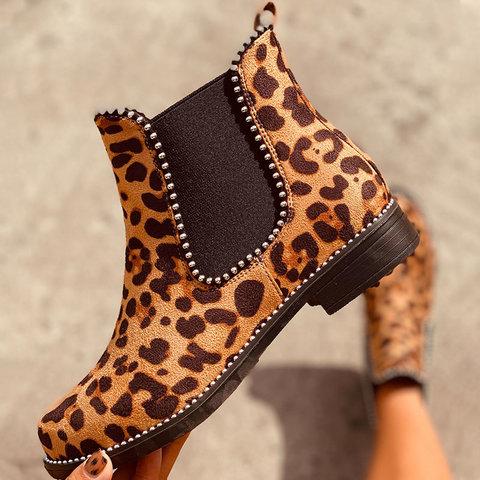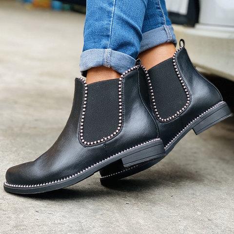Low Heel Artificial Leather Rivet Boots