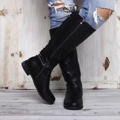 *Low Heel Flat Lace Up Boots Zipper Shoes Thigh High Over Knee Boots