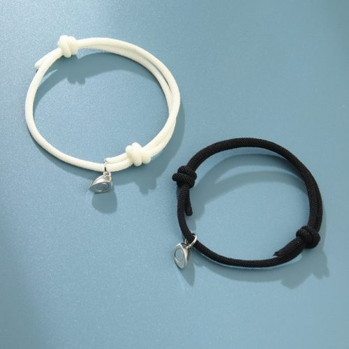 Magnetic Heart Charm Thick String Couple Bracelet