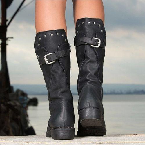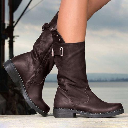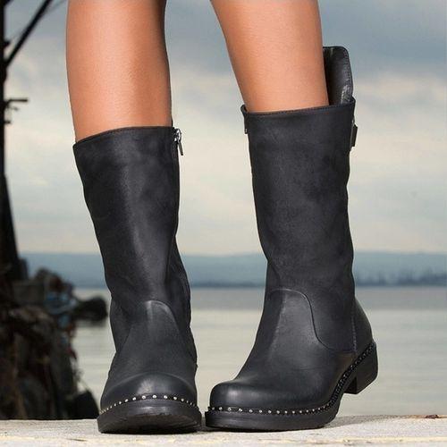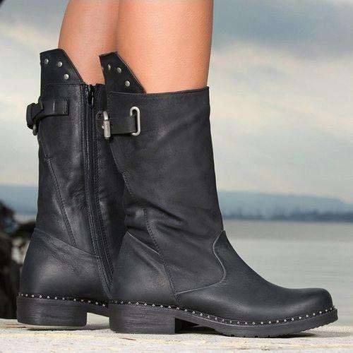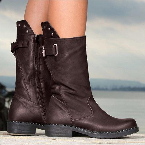 Women's Zipper Mid-Calf Boots Low Heel Boots