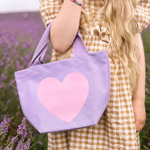Mini Heart Bag - Lavender Kid's Tote - Children's Tote Bag - Mini Bag - Kid's Lunch Bag - Heart Canvas Bag - Busy Bag - Kid's heart Bag