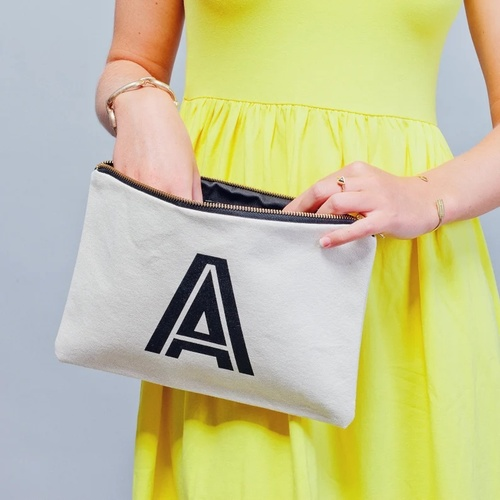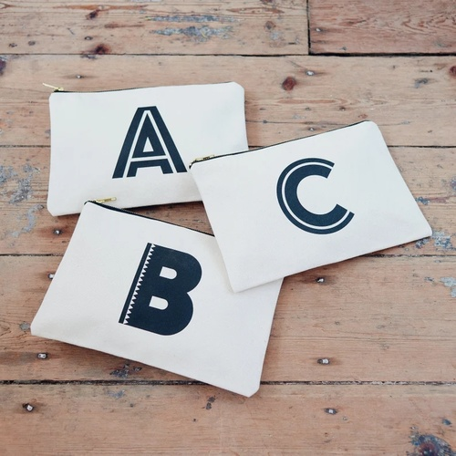 Our sturdy natural canvas zipper pouches have been made exclusively for Alphabet Bags, this is not your usual pouch!