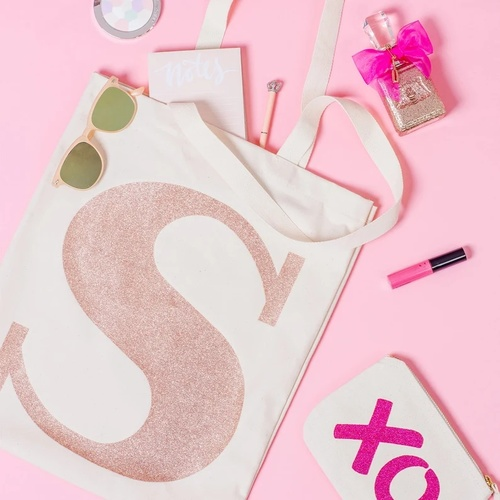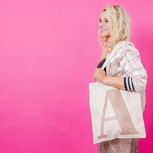Monogrammed Tote - Gift Idea for Girls - Rose Gold Glitter - Initial Tote Bag - Alphabet Bags