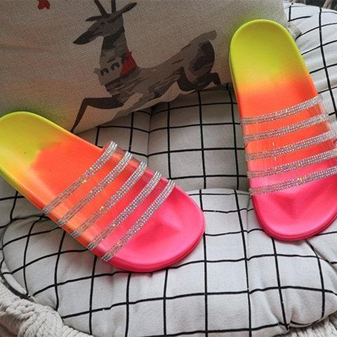 Multi-color Slip-On Rhinestone Flat Heel PVC Slippers
