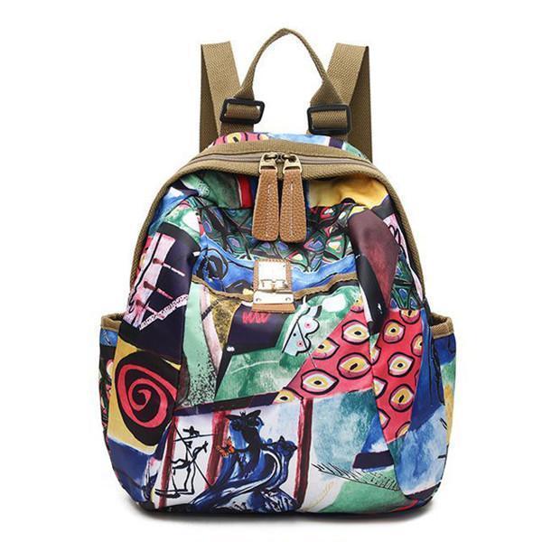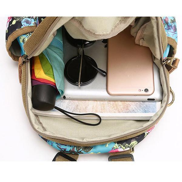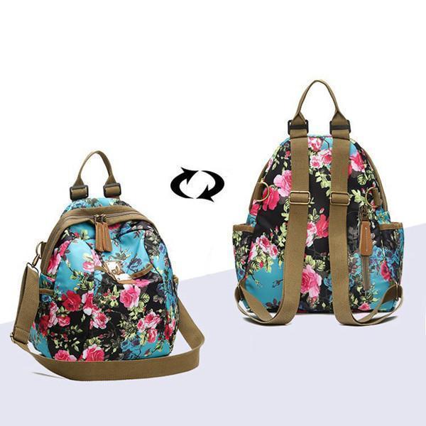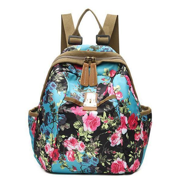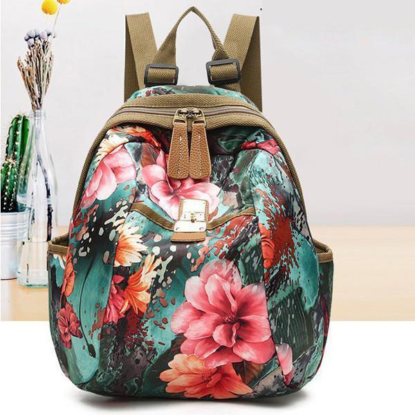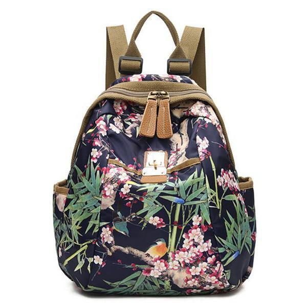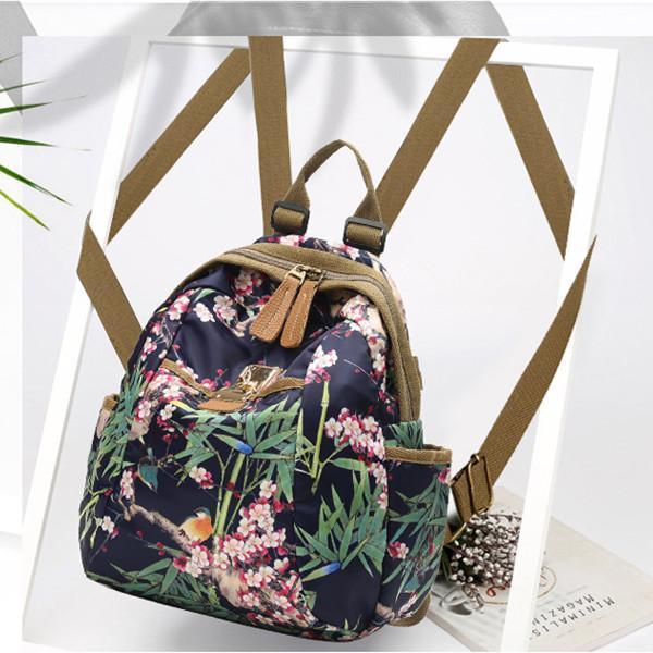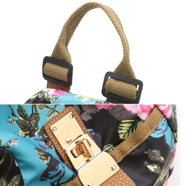 National Style Flower Pattern Nylon Shoulder Bag Backpack